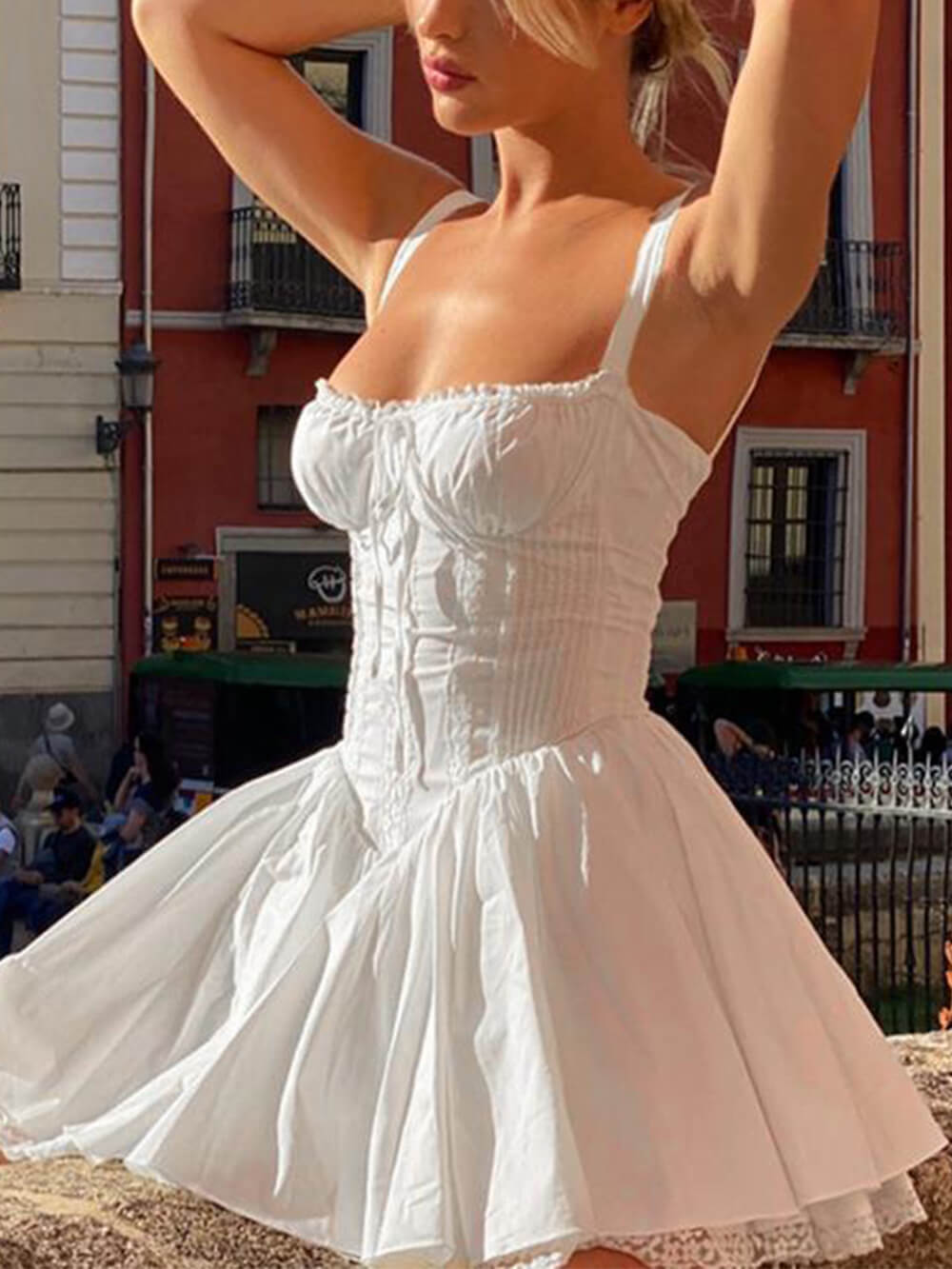 • Lace A-Hem Mini Dress